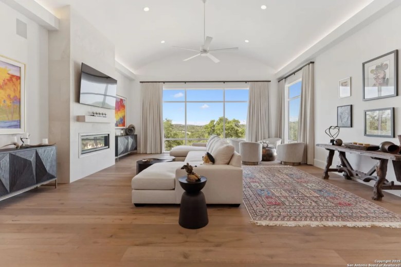 The palatial seven-bedroom, six-and-a-half-bath property sits atop 47.84 acres surrounded by lovely views of the Texas Hill Nation. Each inside and outdoors its hand-troweled partitions, the 6,925-square-foot house is loaded with facilities.